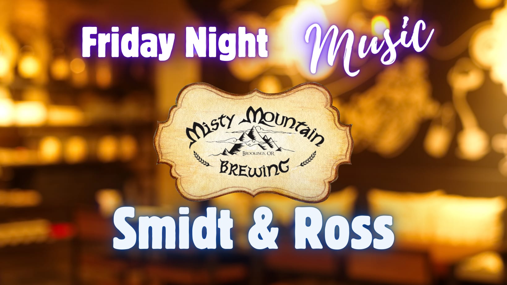 🎶🍻 Friday Night Music at Misty Mountain Brewery & Tap Haus! 🍻🎶 Kick off your weekend the right way with live music, great beer, and an unforgettable atmosphere! Join us this Friday night as the talented Smidt & Ross takes the stage, bringing his signature sound to Misty Mountain Brewery & Tap Haus! 🎸✨ 🌟 Why You Don’t Want to Miss This: ✔ Live Music – Enjoy the smooth, soulful tunes of Lon Goddard! ✔ Craft Beer & Cider – Sip on locally brewed, all-grain ales while you listen! 🍺 ✔ Laid-Back Vibes – Relax, unwind, and soak in the best Friday night energy in town! ✔ Great Company – Gather your friends & make it a night to remember! 📅 Date: April 11, 2025 📍 Location: Misty Mountain Brewery & Tap Haus, Downtown Brookings, OR 🎶 Music Starts: 6 PM 🔥 No cover – just good music, great beer, and a fantastic time! 🔥 Tag your crew, grab a pint, and let’s make Friday night one to remember! 🍻🎶Images