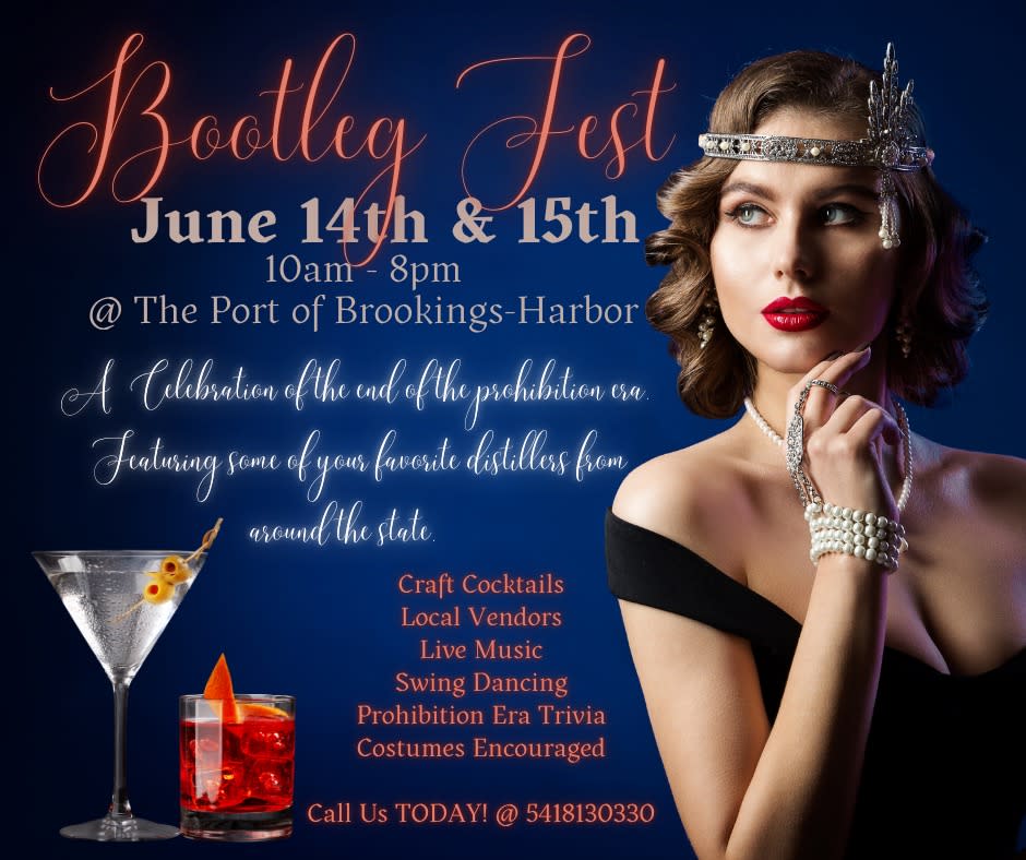 Boot Leg Fest (10am-8pm Both Days) June 14, 15 We take you back in time to the Prohibition era, where gangsters ruled the streets and there was a 'Speakeasy' on every corner where Flappers danced the night away to all the great hits and everyone in the joint enjoyed bootleg booze! Come dressed in one of the styles of the times with clothes from the Great Gatsby to Bonnie & Clyde! Live Music, Food, Vendors, Kids Activities, Costume Contest, and featuring Local DistilleriesImages
